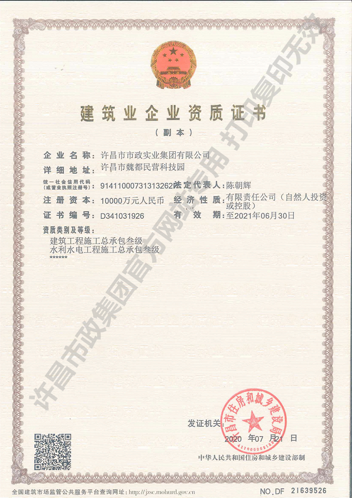 許昌市政 首頁(yè) > 許昌市政 > 企業(yè)資質(zhì)