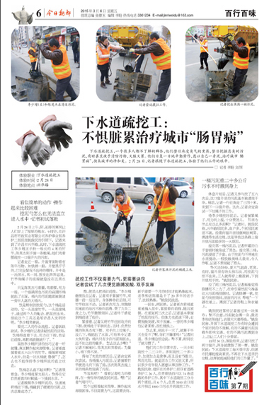 下水道疏挖工,一個很多人都不了解的群體,他們整日承受臭氣的熏蒸,整日挖掘惡臭的污泥,有時甚至徒手清除污物,又臟又累。他們?nèi)諒?fù)一日地辛勤勞作,愿以自己一身泥,治療城市“腸胃病”,換來城市的凈和美。2月28日,記者跟隨下水道疏挖工,體驗了他們工作的艱辛。