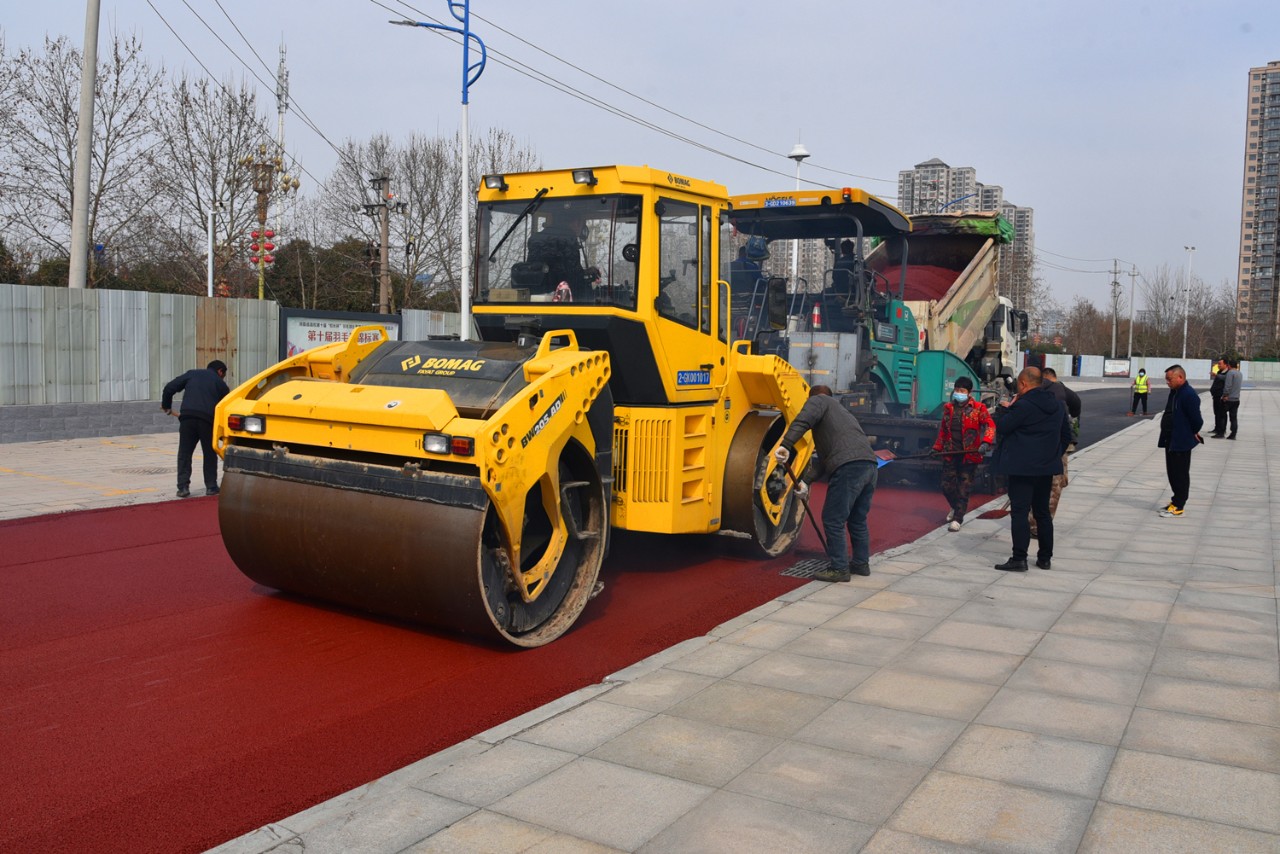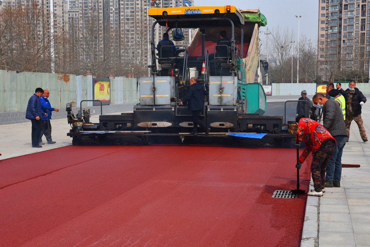 3月4日7時(shí),在生產(chǎn)機(jī)器隆隆的轟鳴聲中,許昌市政集團(tuán)自主生產(chǎn)的第一車彩色瀝青混凝土成功出廠。伴隨著冉冉升起的朝陽,滿載著彩色瀝青混凝土的運(yùn)輸車駛向施工工地。